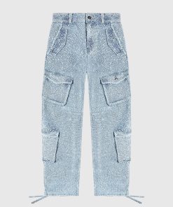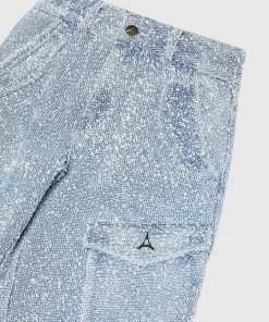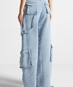 Manière De Voir Women’s Anne – High Waisted Boucle Denim Cargo Pants – Mid Blue | Mid Blue