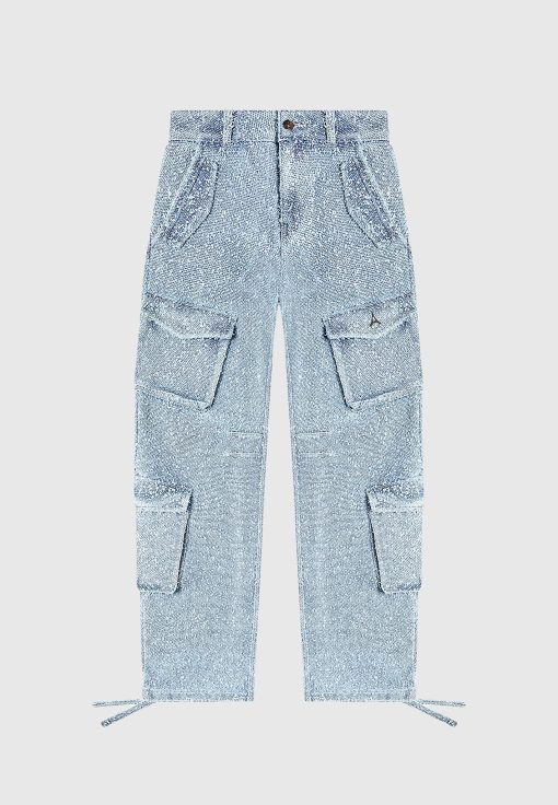 Manière De Voir Women’s Anne – High Waisted Boucle Denim Cargo Pants – Mid Blue | Mid Blue