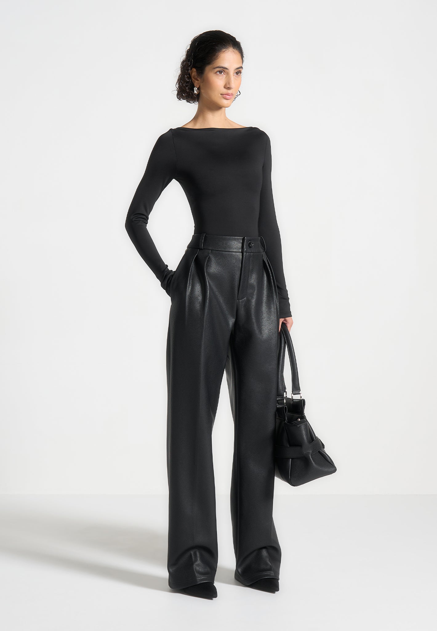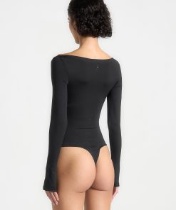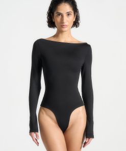 Sleek, structured, and effortlessly elevated. Designed with a high-leg silhouette and shaped boat neck, this long sleeve bodysuit features subtle cut-out detailing for a refined look. The soft mid-weight fabric delivers a flattering fit, perfect for layering or wearing solo.