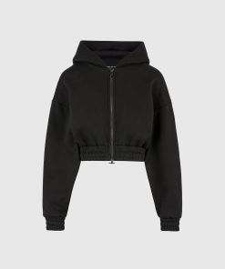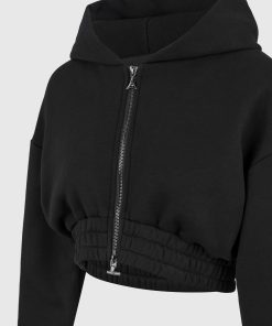 This cropped zip hoodie redefines casual wear with a structured twist. Cut from soft brushed cotton fleece, it features a high cinched waistband that sculpts the waist while creating volume through the body and sleeves. The exaggerated hood and dropped shoulders add relaxed contrast to the fitted hem, making it the perfect balance of comfort and contour.
