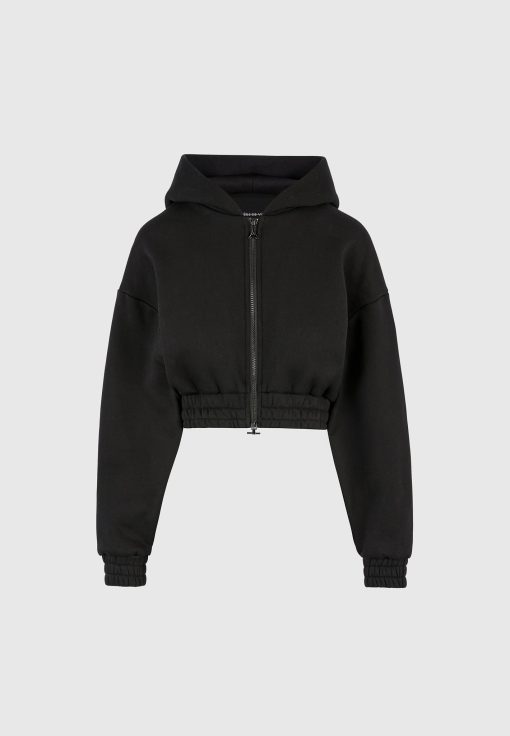 This cropped zip hoodie redefines casual wear with a structured twist. Cut from soft brushed cotton fleece, it features a high cinched waistband that sculpts the waist while creating volume through the body and sleeves. The exaggerated hood and dropped shoulders add relaxed contrast to the fitted hem, making it the perfect balance of comfort and contour.