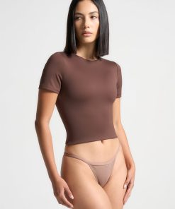 The Éternelle Short Sleeve T-Shirt is the perfect addition to your wardrobe. Featuring a crop top silhouette with a fitted crew neck, this t-shirt is sure to provide you with a flattering and comfortable fit.