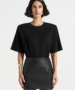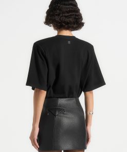 Designed for effortless structure, this bodysuit features sculpting shoulderpads and a timeless crew neckline. The relaxed, boxy fit and snap popper closure offer all day comfort, making it an easy-to-style staple with a refined silhouette.