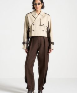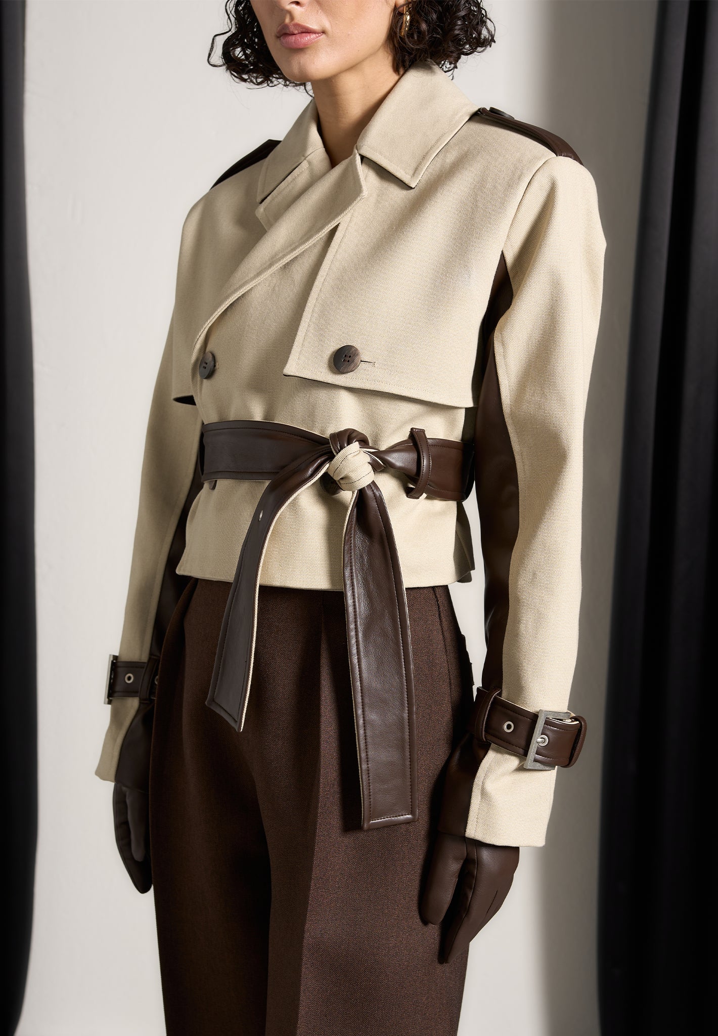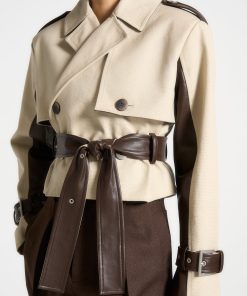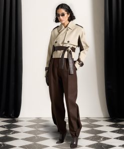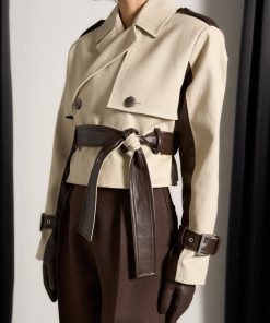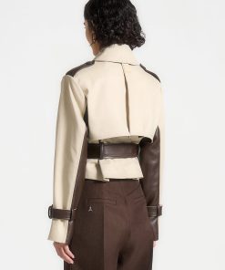 Discover the perfect blend of style and practicality. Featuring a unique contrast fabric design, this coat is both eye-catching and versatile. The belted waist adds a flattering touch, while the cropped length adds a modern twist. Elevate your wardrobe with this must-have piece.