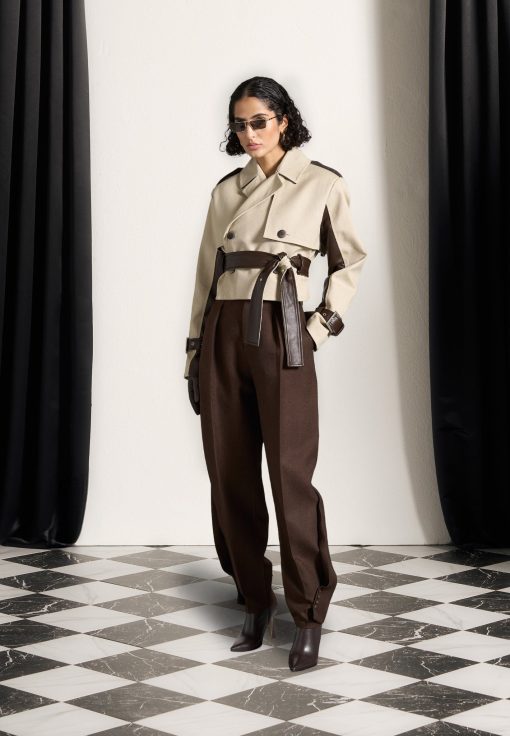 Discover the perfect blend of style and practicality. Featuring a unique contrast fabric design, this coat is both eye-catching and versatile. The belted waist adds a flattering touch, while the cropped length adds a modern twist. Elevate your wardrobe with this must-have piece.