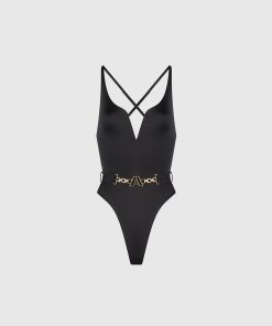 The Eiffel Belted Swimsuit is a must-have for any swimwear collection. Made with adjustable straps and a plunging neckline, this swimsuit offers a comfortable and flattering fit. The detachable belt adds a touch of chic style, making you stand out in any pool or beach setting.