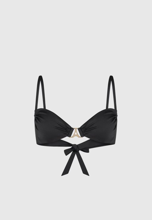 Expertly designed with adjustable straps and ruched detailing, the Eiffel Ruched Bikini Top is a must-have for any beach day. Featuring elegant Gold Manière De Voir hardware, this top offers both style and functionality. Perfect for a confident, effortless look.