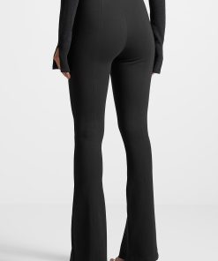 These fit and flare leggings feature dynamic split hems and a high waisted fit. The unique chain detailing is a stylish add-on and adds to the timelessness of the piece. Perfect for a night out or any other special occasion.