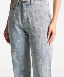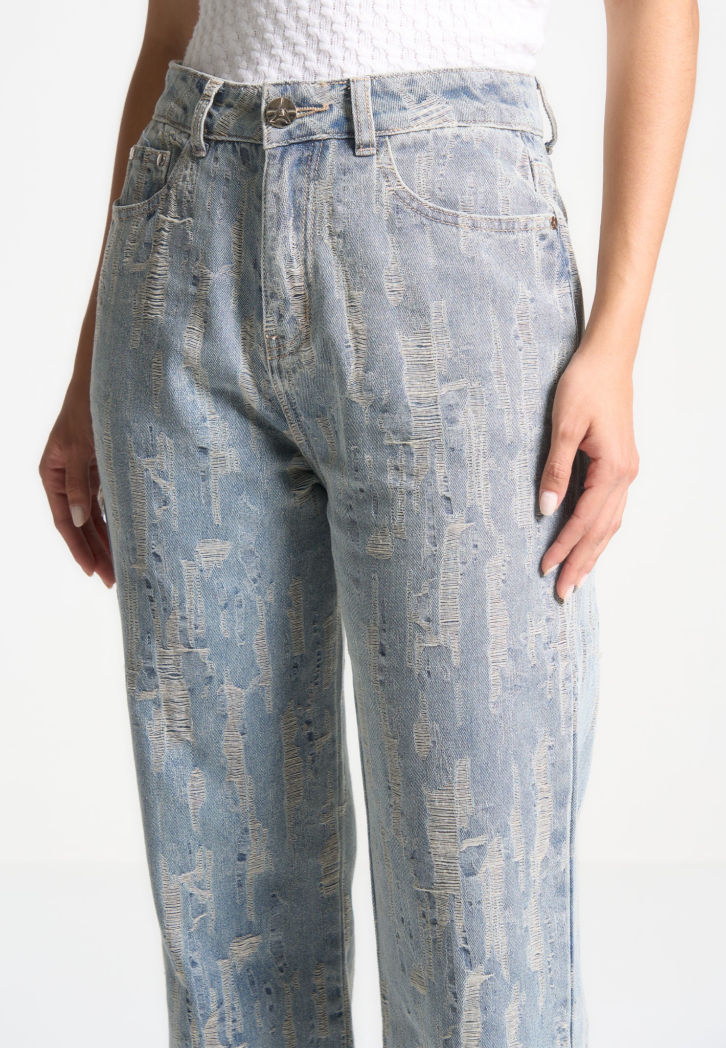 Manière De Voir Women’s Florence – Distressed High Rise Straight Leg Jeans – Mid Blue | Mid Blue