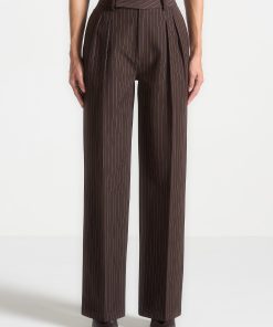 Experience classic style and versatility with our Pinstripe Twin Pleat Tailored Trousers. The straight leg fit and pleat detail give a polished, tailored look, perfect for any occasion from day to night.
