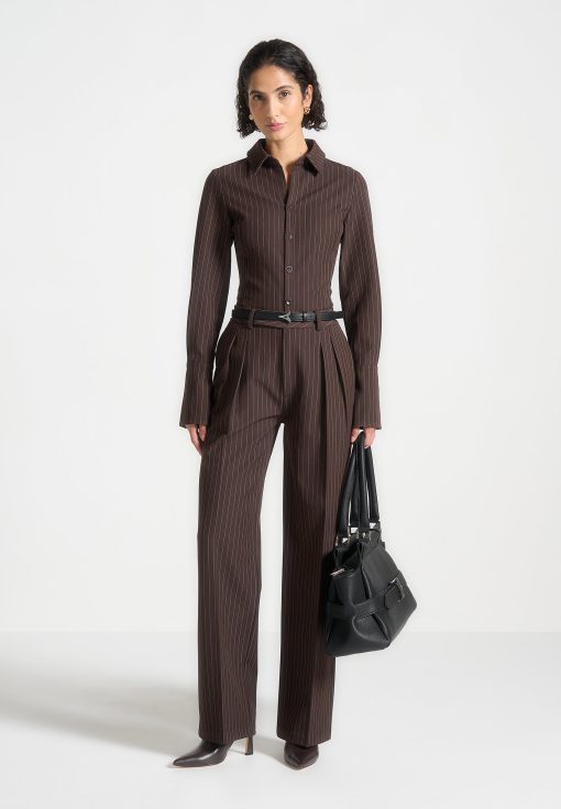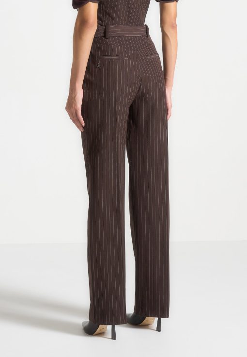Experience classic style and versatility with our Pinstripe Twin Pleat Tailored Trousers. The straight leg fit and pleat detail give a polished, tailored look, perfect for any occasion from day to night.