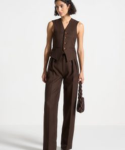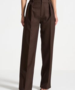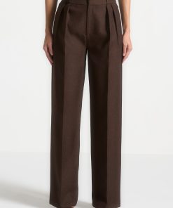 These trousers feature twin pleats and a straight leg, creating a relaxed and comfortable fit. The straight leg fit and pleat detail give a polished, tailored look, perfect for any occasion from day to night. The mid-rise waist flatters the figure creating a classic and timeless look.