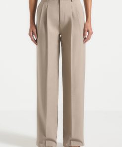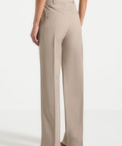 These tailored straight-leg trousers are designed to elevate everyday dressing with clean lines and a confident silhouette. Cut from a structured woven fabric, they feature a high-rise waistband, crisp front pleats, and a full-length leg that elongates the form. Discreet welt pockets and belt loops offer functional polish, while the pressed crease detailing adds a refined, elongated finish.