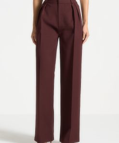 These trousers feature twin pleats and a straight leg, creating a relaxed and comfortable fit. The straight leg fit and pleat detail give a polished, tailored look, perfect for any occasion from day to night. The mid-rise waist flatters the figure creating a classic and timeless look.