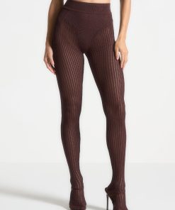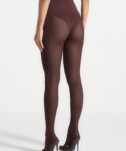Expertly crafted with a contour knit design, these brown footsie leggings flatter your figure for a sophisticated look. The unique footsie feature adds an extra touch of uniqueness to your outfit. Enjoy comfort and style in one with these Knitted Contour Footsie Leggings.