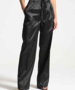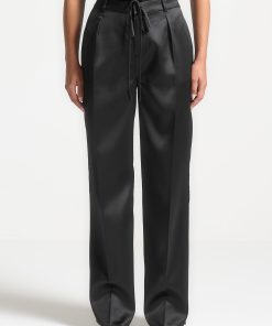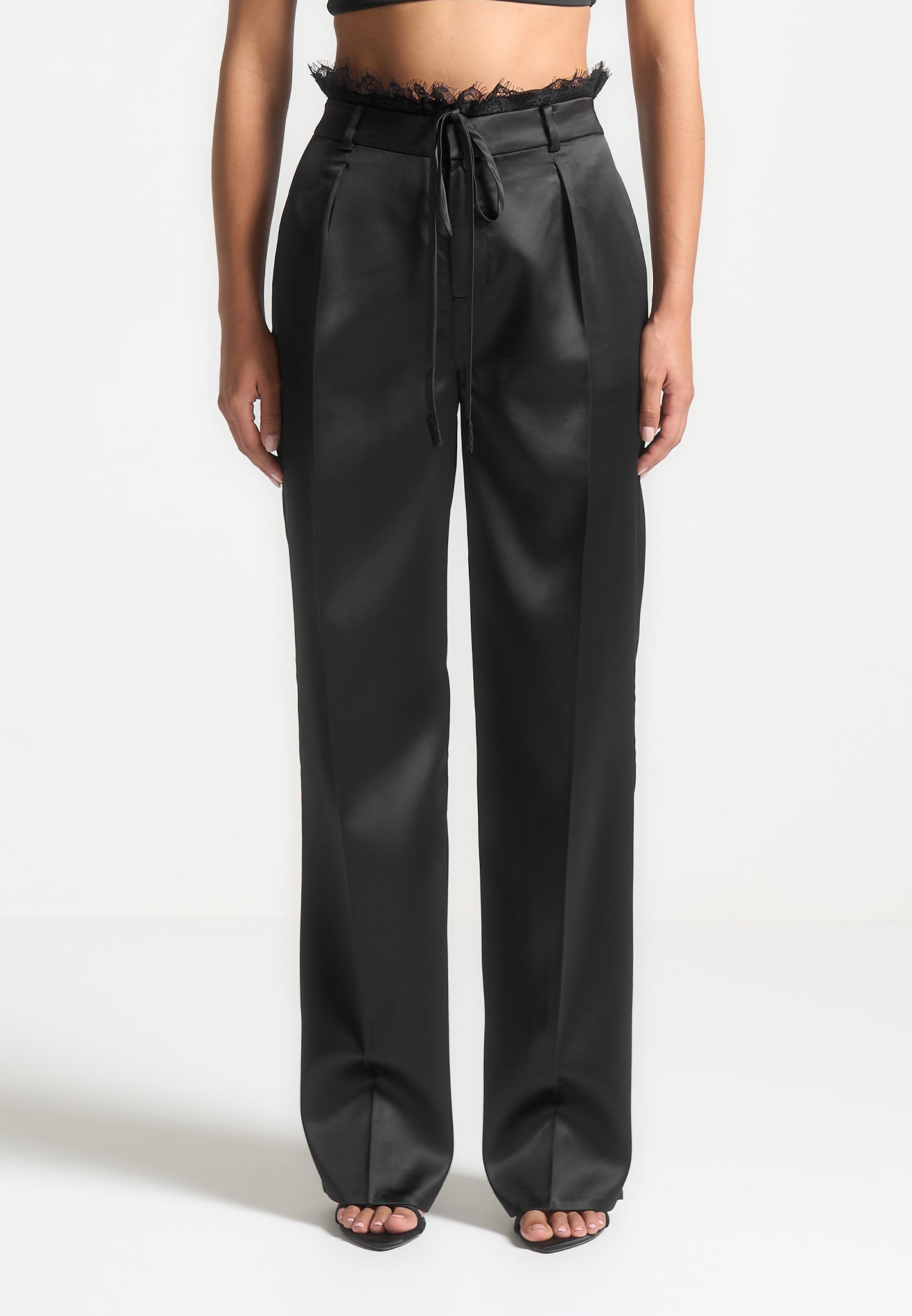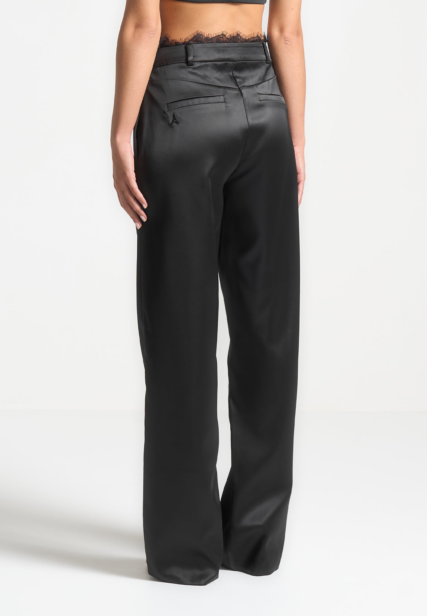 Manière De Voir Women’s Lace Waistband Satin Trousers – Black