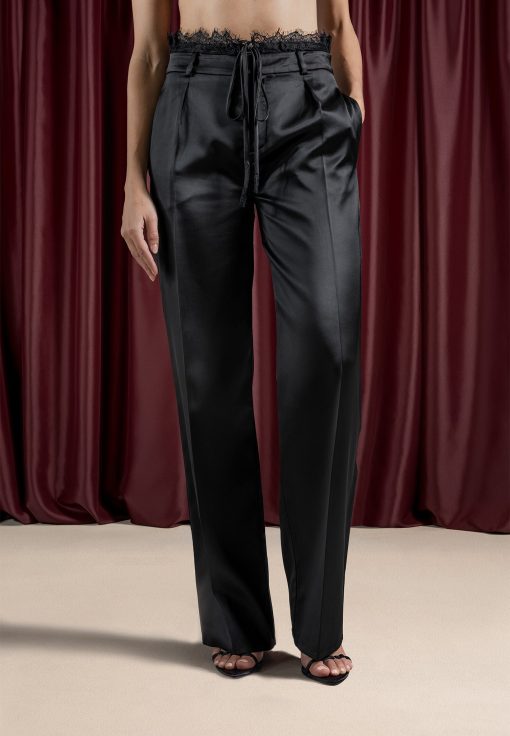 Manière De Voir Women’s Lace Waistband Satin Trousers – Black