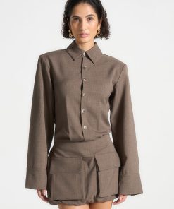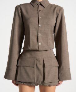 Manière De Voir Women’s Laure – Cargo Shirt Mini Dress – Dark Taupe | Dark Taupe