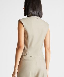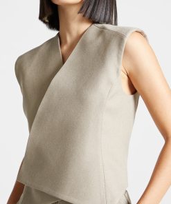 This beige waistcoat features a wrap silhouette with concealed buttons for a tailored, sleek look. Perfect for office-wear or special occasions, this Tailored Wrap Waistcoat pairs well with any outfit to add a tailored touch.