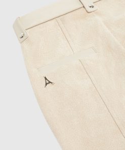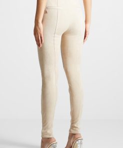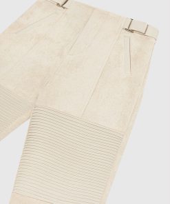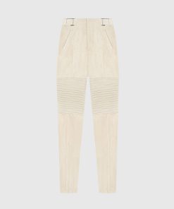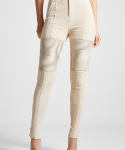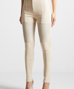 Manière De Voir Women’s Leather And Suede Ribbed Leggings – Beige | Beige