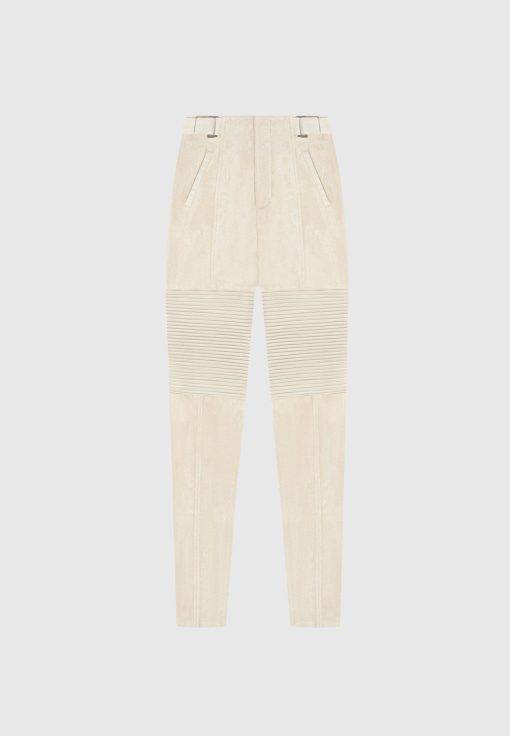 Manière De Voir Women’s Leather And Suede Ribbed Leggings – Beige | Beige