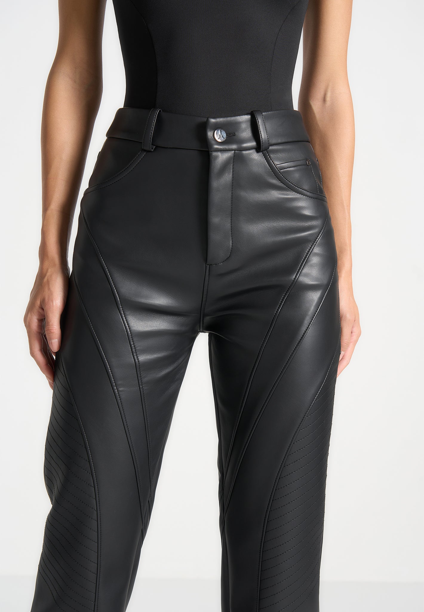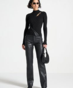 These high-waisted trousers offer a sleek and sophisticated look, perfect for any occasion. The straight leg design provides a flattering silhouette, while the high waist offers comfort and support.