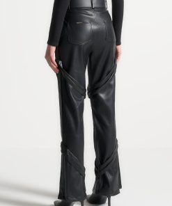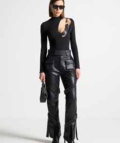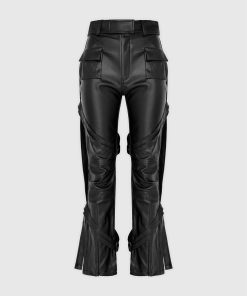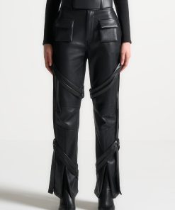 Manière De Voir Women’s Leather Carpenter Cargo Trousers – Black | Black