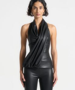 Expertly designed with a draped neckline, this lightweight halter neck top is both figure-flattering and unique. The perfect addition to your wardrobe, this top will make you feel confident and sophisticated.