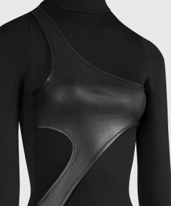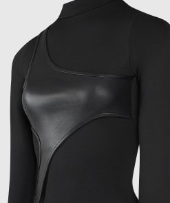 This Leather Overlay High Neck Bodysuit is perfect for any night out. Its leather contrast adds a chic edgy touch to the classic design. Its high neck style provides wearers with a sense of coverage and security.