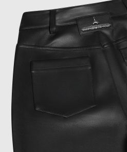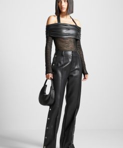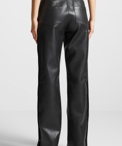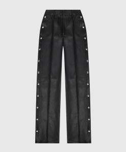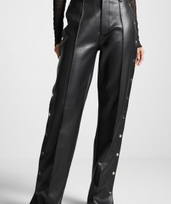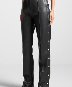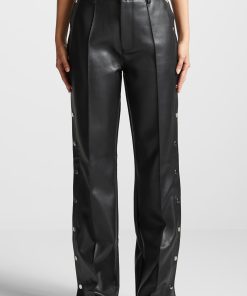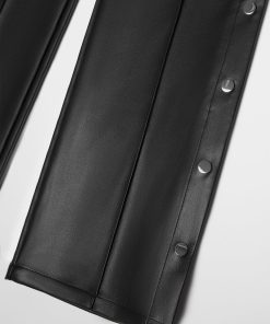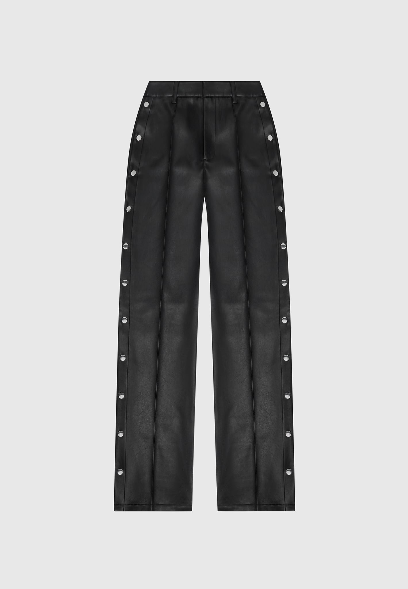 These Vegan Leather Pintuck Popper Trousers will ensure a trendy and modern look. Featuring a wide leg and a high waist, the trousers create an eye-catching silhouette that flatters your figure. Crafted with quality leather for a luxurious feel and timeless look, these trousers are essential for your wardrobe.