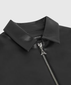 Our Cropped Leather Shirt in black is crafted with a loose fit and soft fabric and features a double zip for optimal comfort. Its unique design offers a stylish and fashionable look that can be dressed up or down.