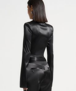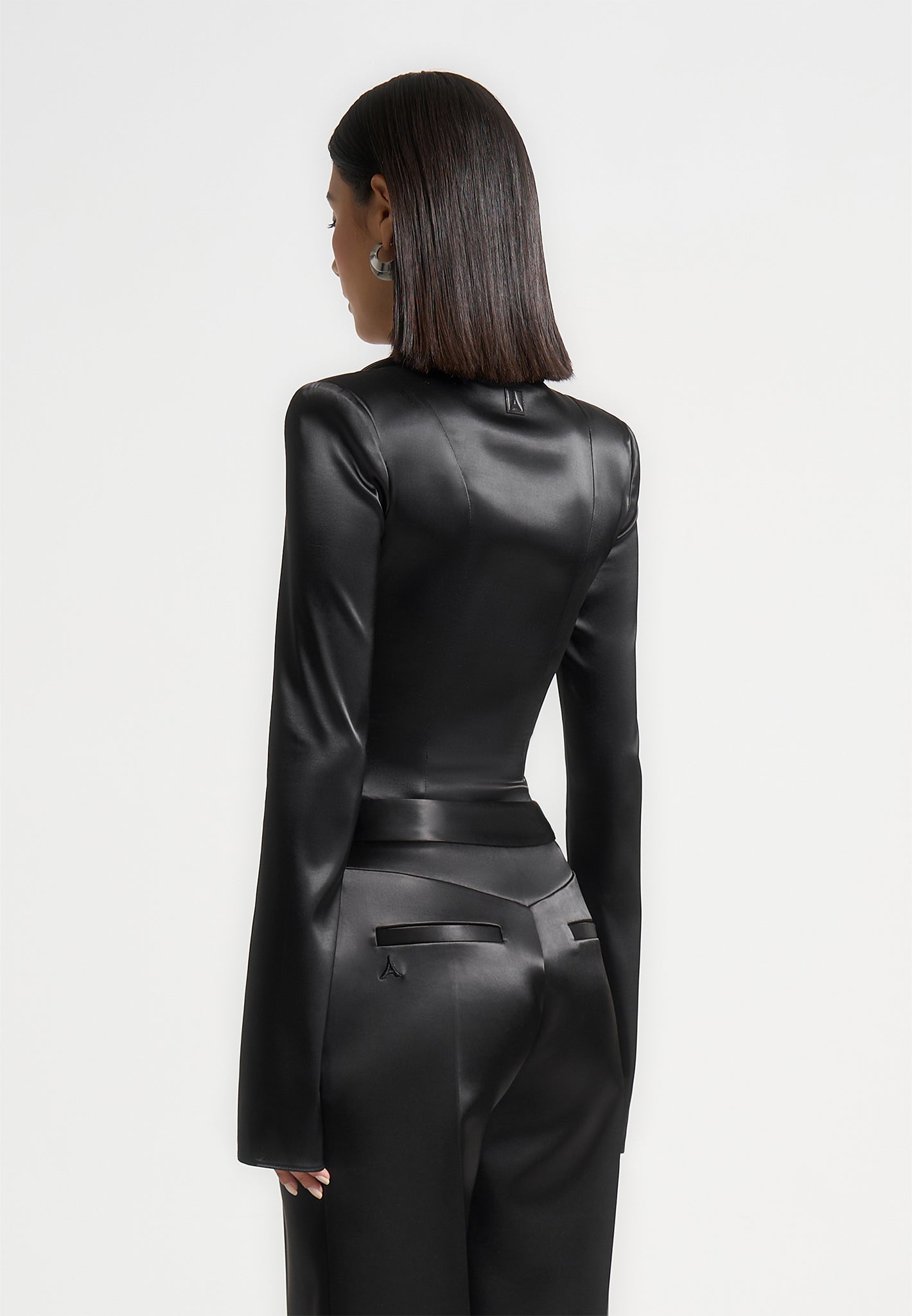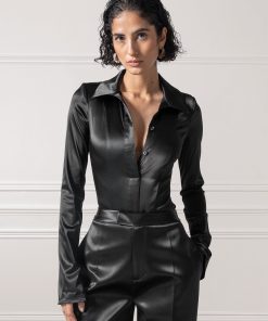 Manière De Voir Women’s Louise – Wide Shoulder Satin Shirt Bodysuit – Black | Black