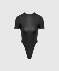 Manière De Voir Women’s Matte Leather Tee Bodysuit – Black