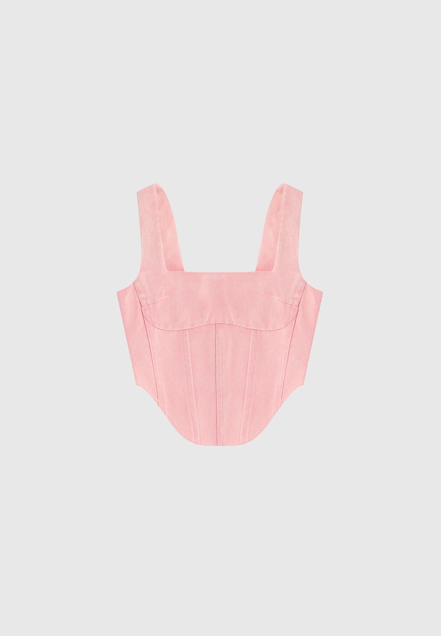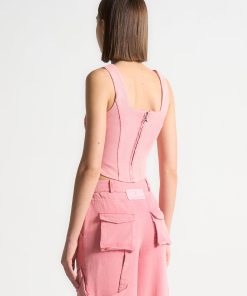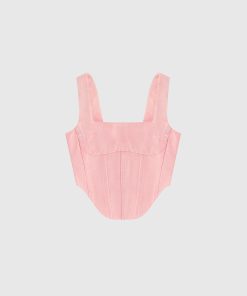 This Denim Corset Top in Washed Pink is designed to flatter your figure with its bust panel feature and internal boning. The dipped hem adds a unique touch while highlighting your curves. The ultimate combination of style and fit. Please note that the wash for this style may vary.