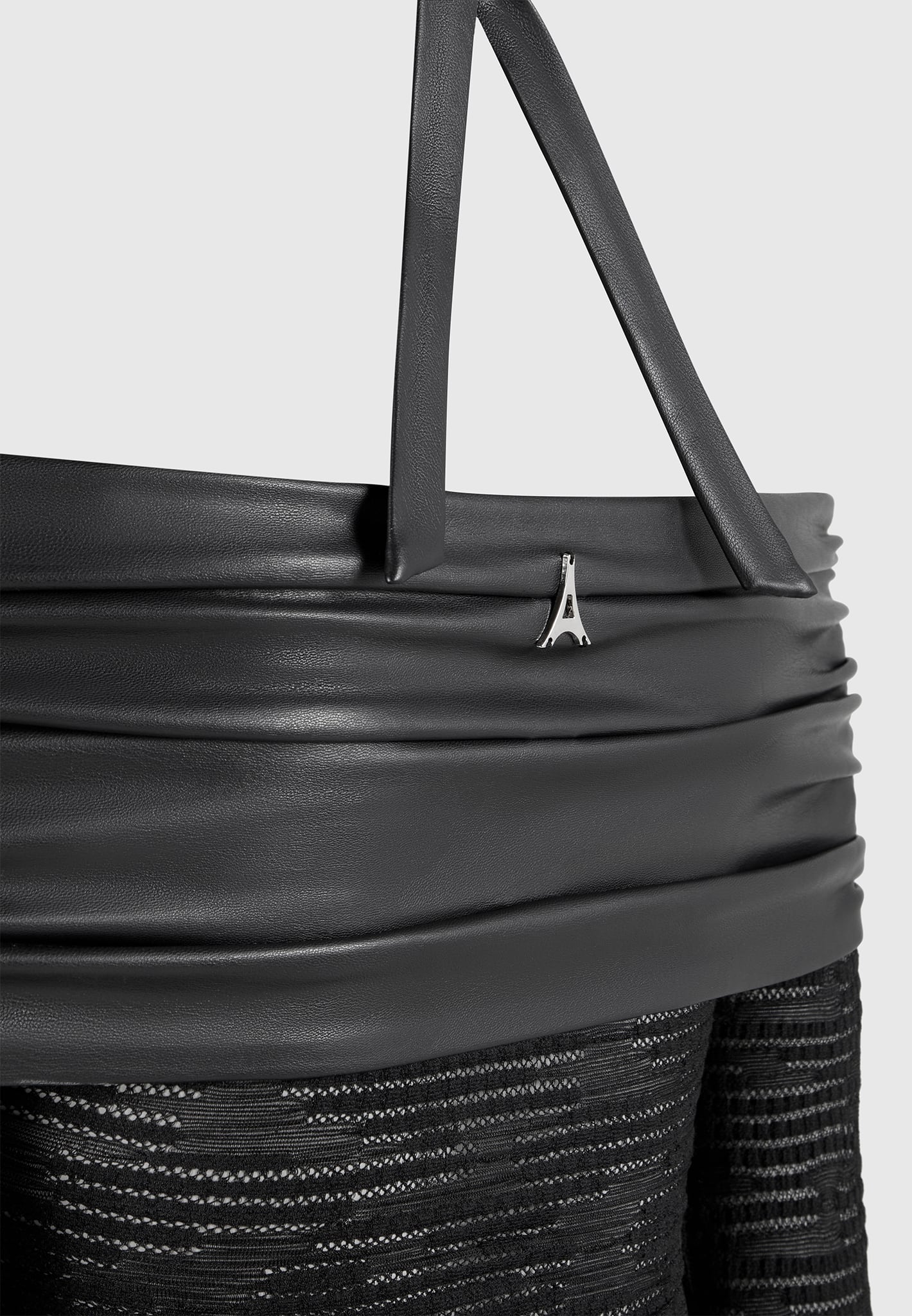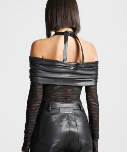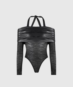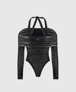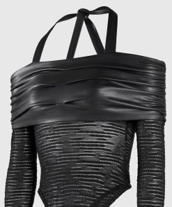This Mesh and Vegan Leather Bardot Bodysuit is perfect for your next night out. This bodysuit features a unique halter neckline with vegan leather detailing, providing a stylish and eye-catching look. The breathable mesh fabric will keep you comfortable while the form-fitting design ensures you’ll look your best. Make an impression the next time you dress to impress.
