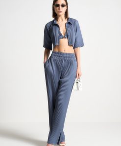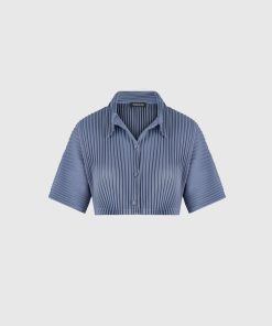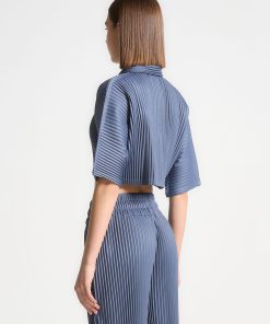 Manière De Voir Women’s Mona – Pleated Cropped Shirt – Blue | Steel Blue