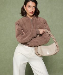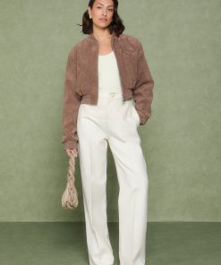 Refine your wardrobe with our Suede Wide Shoulder Bomber Jacket. Crafted from premium vegan suede, it features an elasticated hem for a tailored fit, faux welt pockets for a polished look, and a double-ended zip for added versatility. A perfect balance of modern functionality and timeless sophistication.