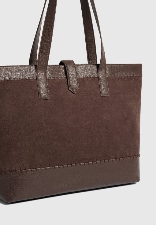 Manière De Voir Women’s Nicolas – Suede & Pebbled Leather Whipstitch Tote Bag – Brown | Brown