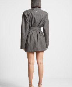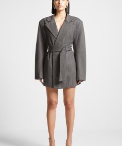 This classic design blazer dress can take you from day to night in style. With an oversized silhouette, it features subtle pinstripes for a timeless yet modern look.