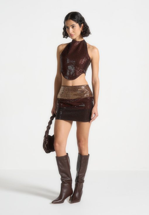 Expertly designed for maximum style, this top offers a halterneck design and a flattering hemline. With its sleek and elegant look, this top is perfect for any event and will make you stand out. Upgrade your wardrobe with this must-have piece.