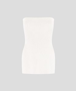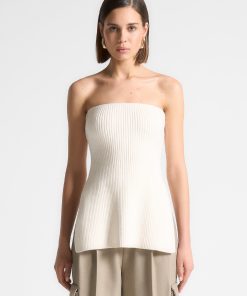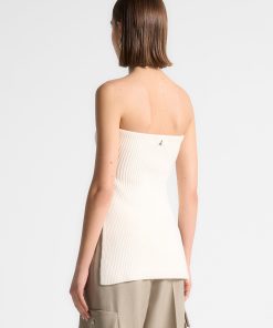 This quality rib knit longline bandeau top is a versatile addition to any wardrobe. With a side slit for added style and comfort, this top is perfect for any occasion. Made from premium knit material, it offers both quality and style.
