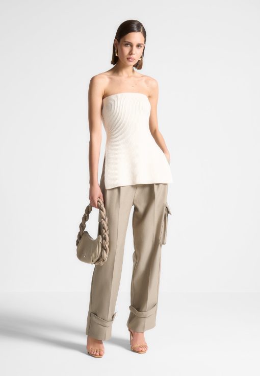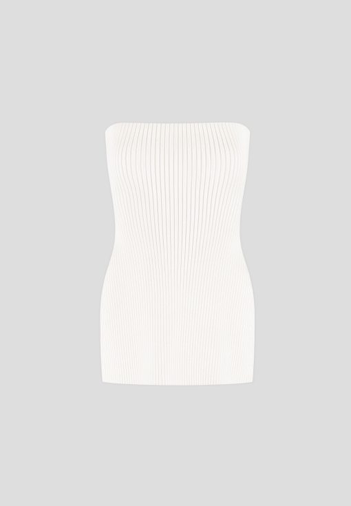 This quality rib knit longline bandeau top is a versatile addition to any wardrobe. With a side slit for added style and comfort, this top is perfect for any occasion. Made from premium knit material, it offers both quality and style.