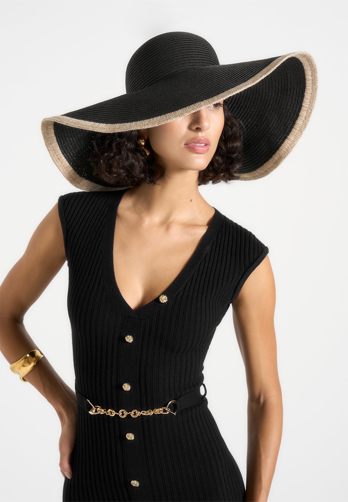 Manière De Voir Women’s Sandrine – Raffia Oversized Sun Hat – Black/natural | Black