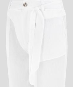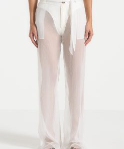 These sheer trousers are perfect for a sophisticated and elegant look. The lightweight fabric offers comfort and breathability, while the detachable belt adds versatility. Featuring an internal knicker, these trousers provide both coverage and style.