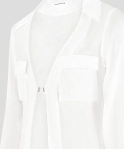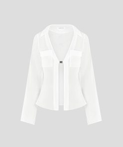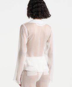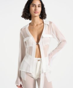 Expertly crafted from lightweight fabric, this sheer shirt is an essential addition to any wardrobe. The elegant Eiffel clasp front closure adds a touch of sophistication to this piece, perfect for day or night. Enjoy the breathable comfort and effortless style of this timeless shirt.
