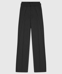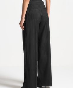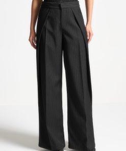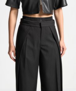 Expertly designed for versatility, these Satin Waistband Pinstripe Trousers are a must-have for any wardrobe. Featuring a double waistband and wide leg, these trousers offer a flattering fit and can be dressed up or down for any occasion. Sleek and stylish, these trousers are a timeless addition to your wardrobe.