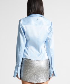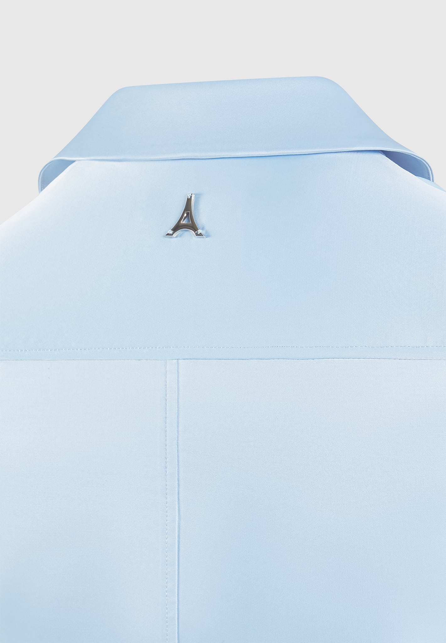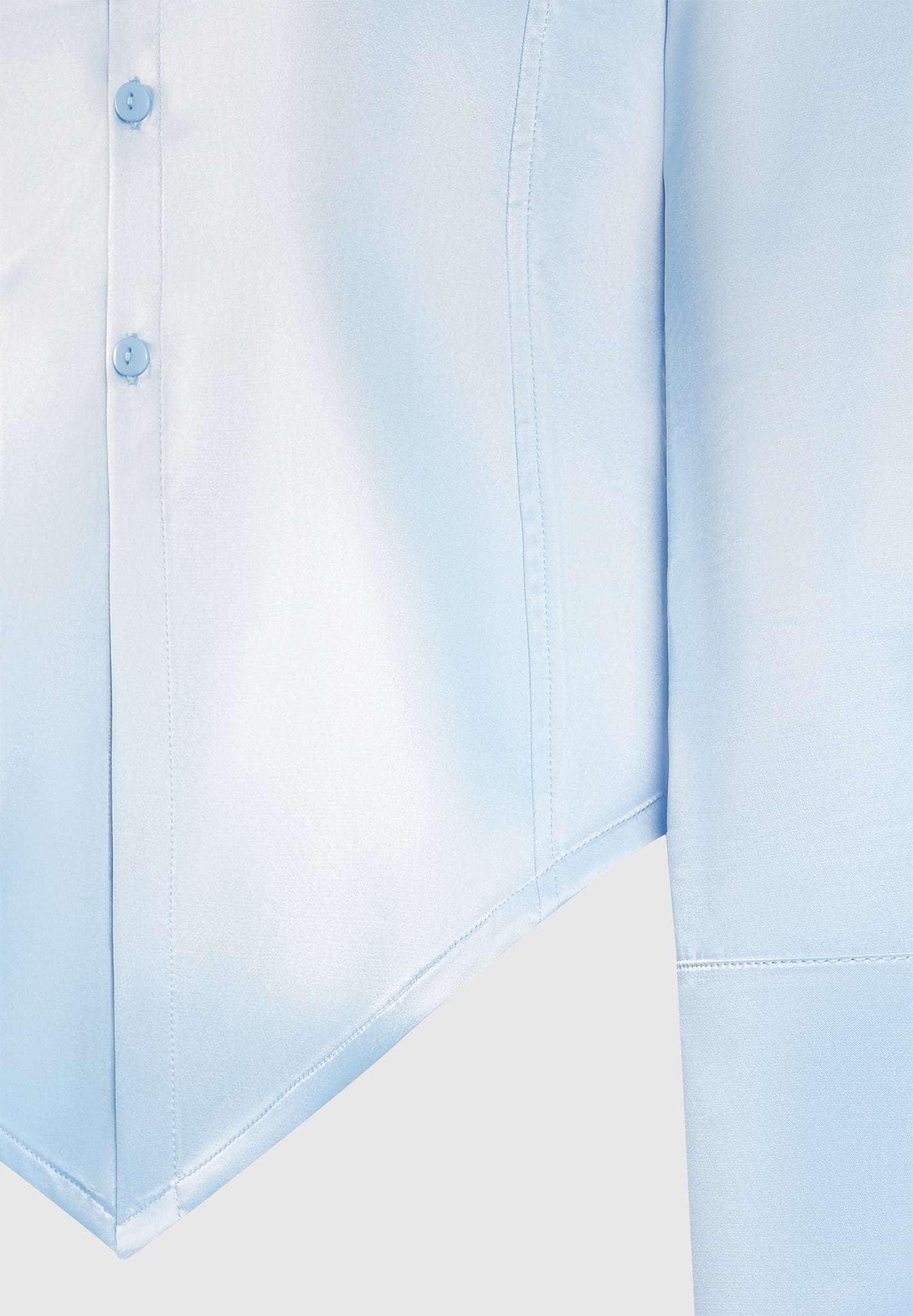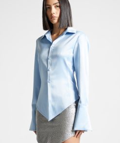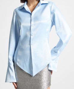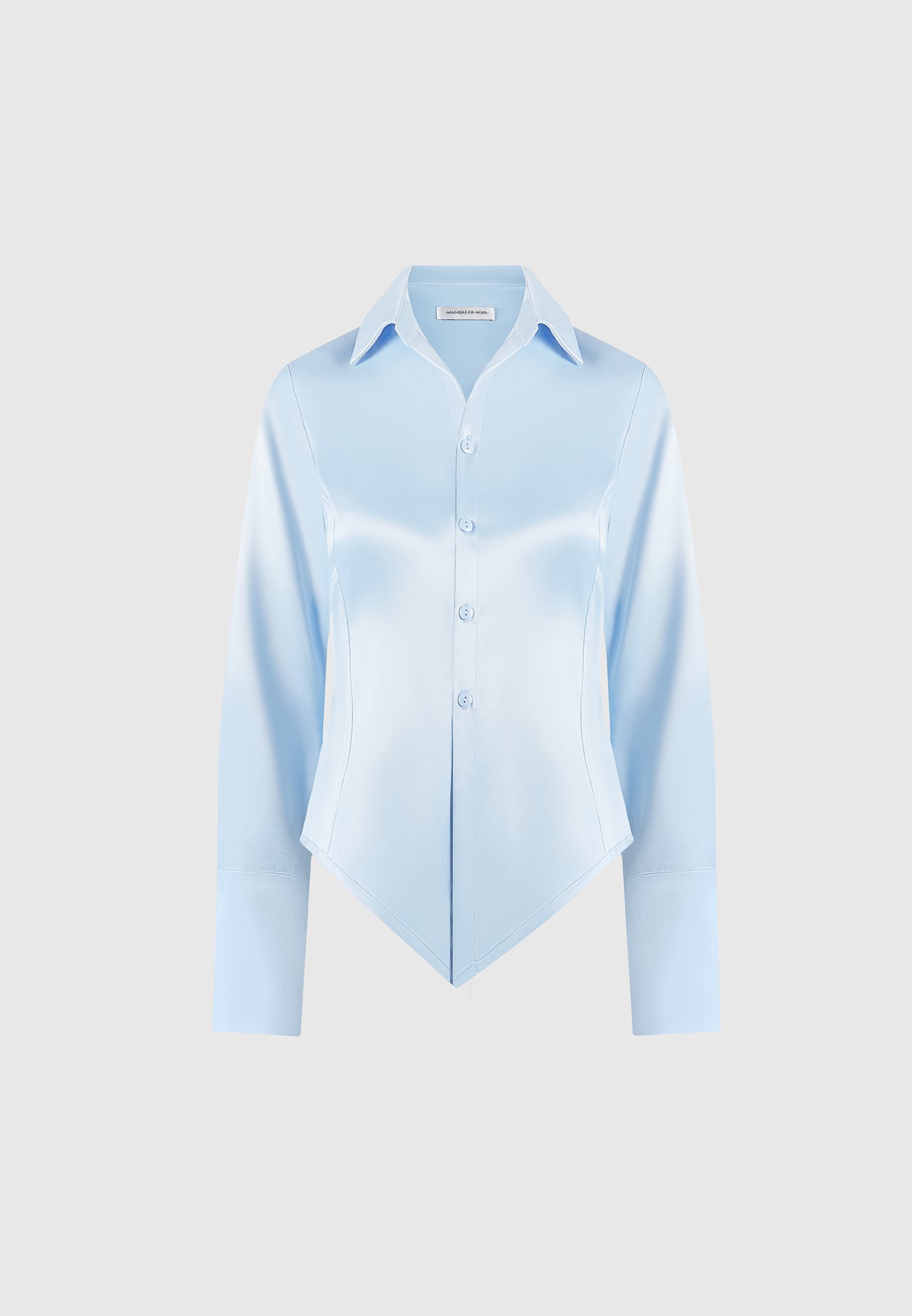 This Angled Satin Shirt is crafted from a soft touch fabric and tailored for a flattering fit. This timeless design offers the wearer superior comfort and a stylish silhouette. Perfect for special occasions or casual wear.
