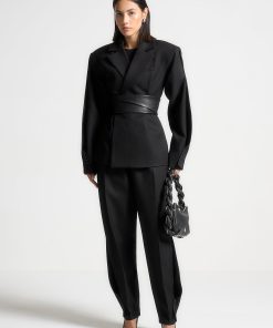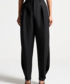 Expertly crafted for a tailored fit, these trousers feature twist detailing and centre pleats for a chic and professional look. Elevate your wardrobe with these versatile trousers that combine fashion and function.