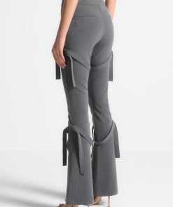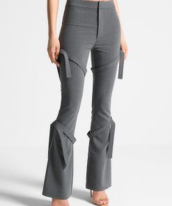 Manière De Voir Women’s Strap Detail Pinstripe Fit And Flare Leggings – Grey | Grey
