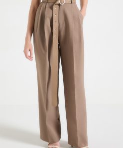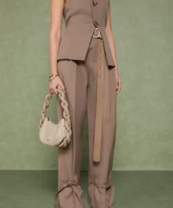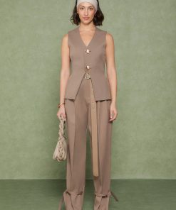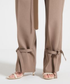 Manière De Voir Women’s Suzanne – Tailored Trousers With Oversized Belt And Ankle Ties – Taupe | Taupe